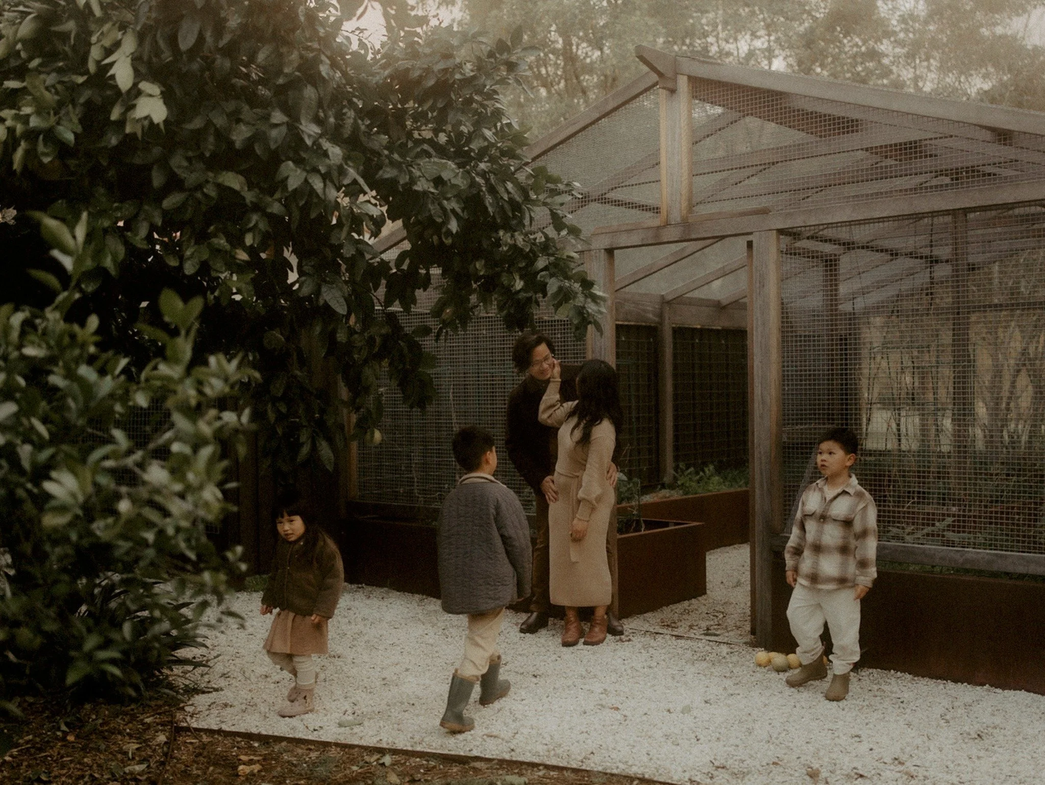 A slow family session in a garden setting